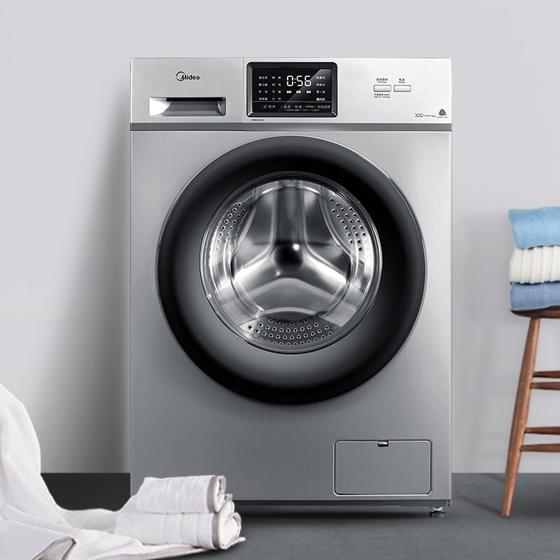 美的(Midea)MG100V31DS5 10公斤全自动滚筒洗脱一体洗衣机 变频节能静音 家用大容量银色 巴氏除菌洗